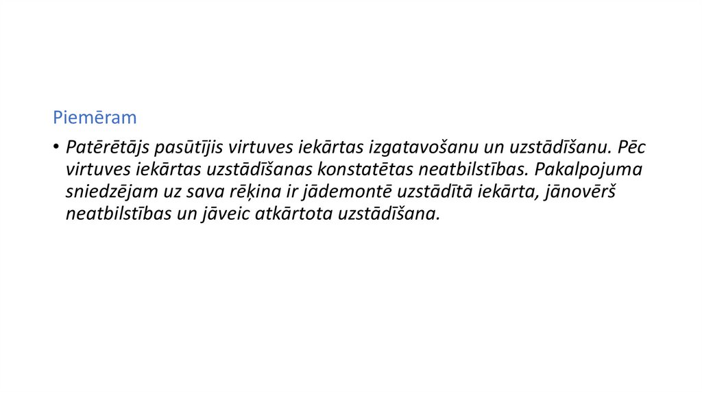 Piemēram• Patērētājs pasūtījis virtuves iekārtas izgatavošanu un uzstādīšanu. Pēc