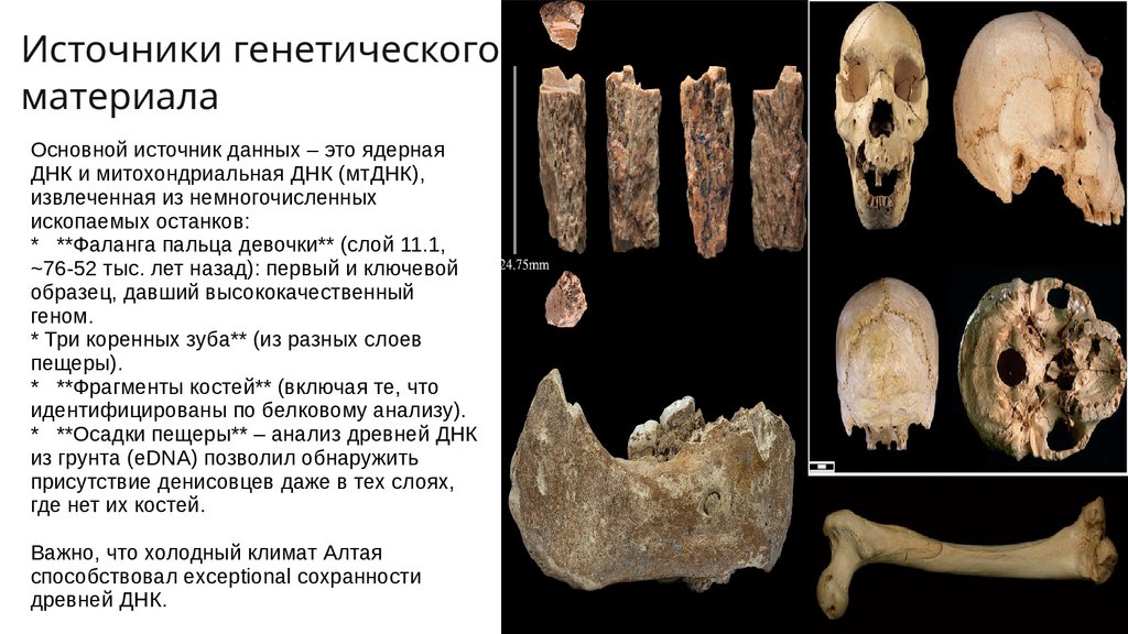 * **Осадки пещеры** – анализ древней ДНК