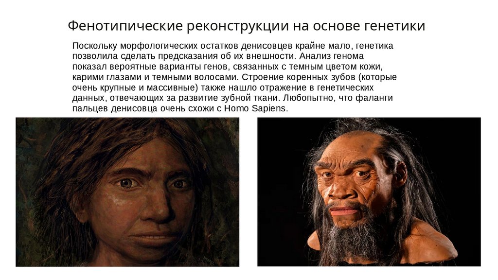 Фенотипические реконструкции на основе генетикиПоскольку морфологических остатков денисовцев крайне мало, генетика