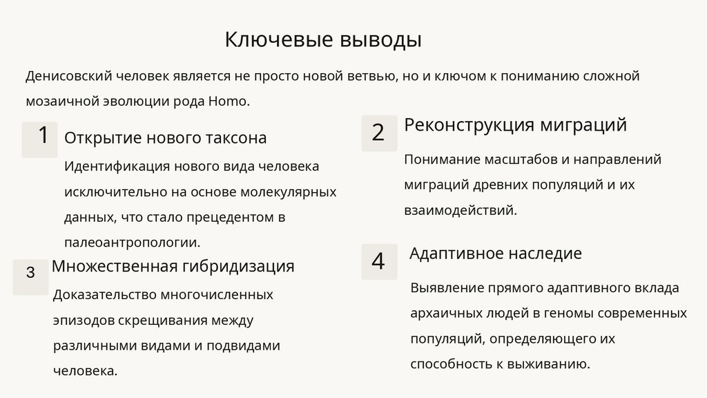 Ключевые выводыДенисовский человек является не просто новой ветвью, но и ключом к пониманию сложной