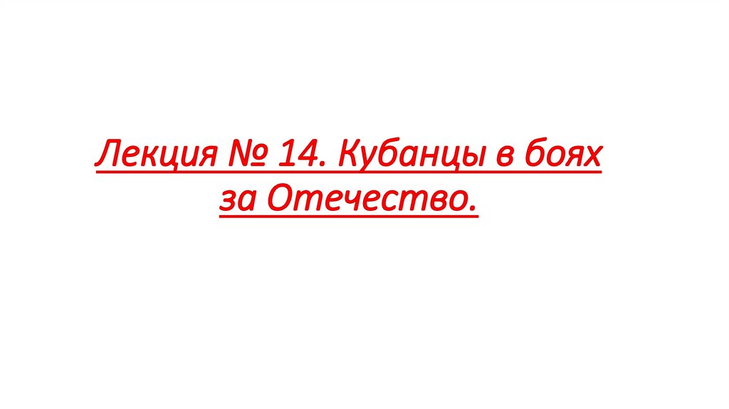 1. Лекция № 14. Кубанцы в боях за Отечество.