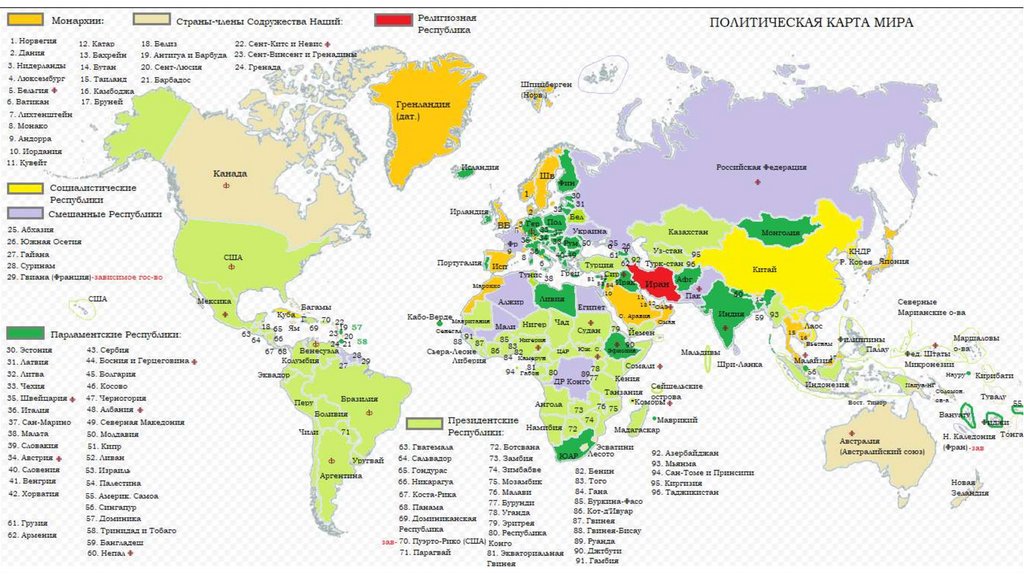Индонезия, Ливия, Иран, Монголия, Перу и др.);