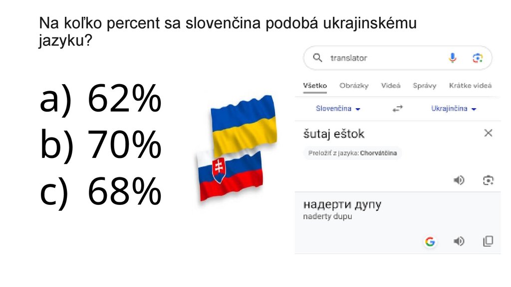Na koľko percent sa slovenčina podobá ukrajinskémujazyku?