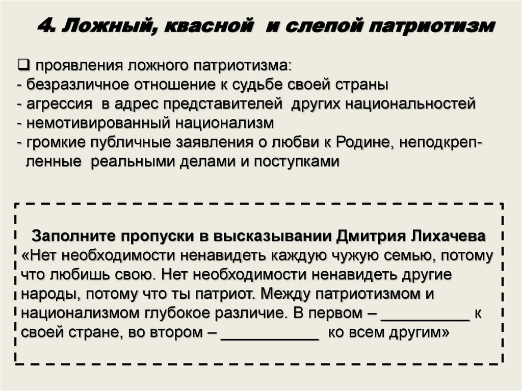 4. Ложный, квасной и слепой патриотизмпроявления ложного патриотизма: