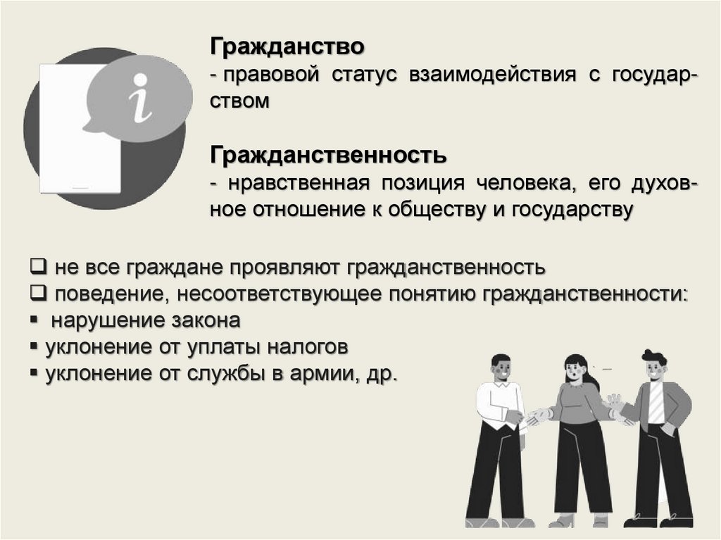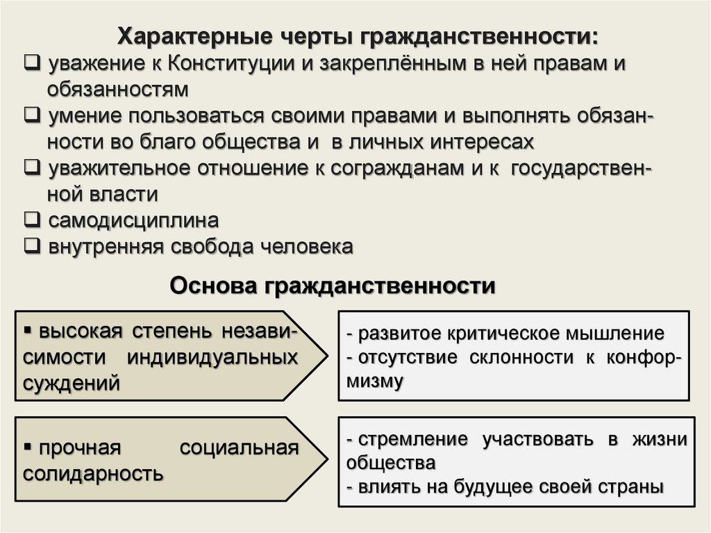 Характерные черты гражданственности:уважение к Конституции и закреплённым в ней правам и