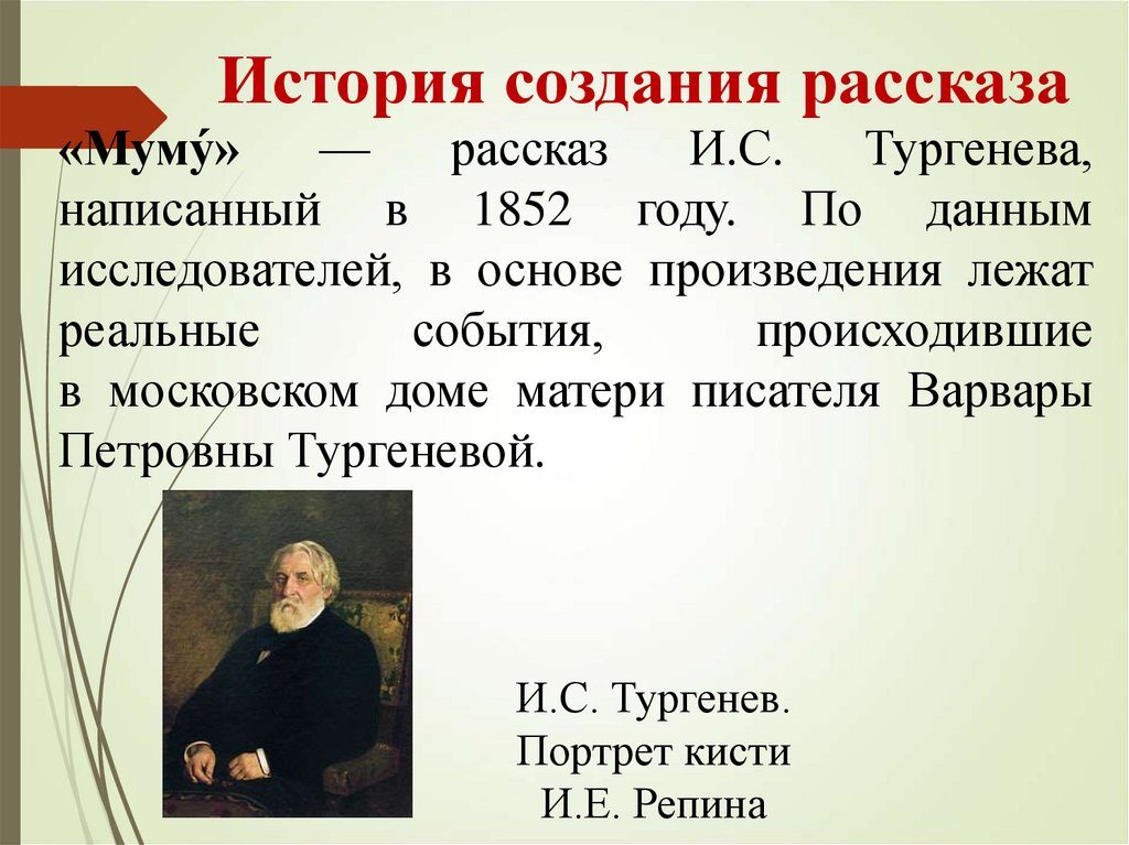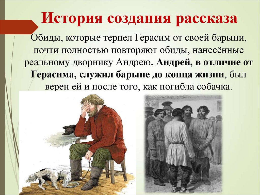 История создания рассказаОбиды, которые терпел Герасим от своей барыни,