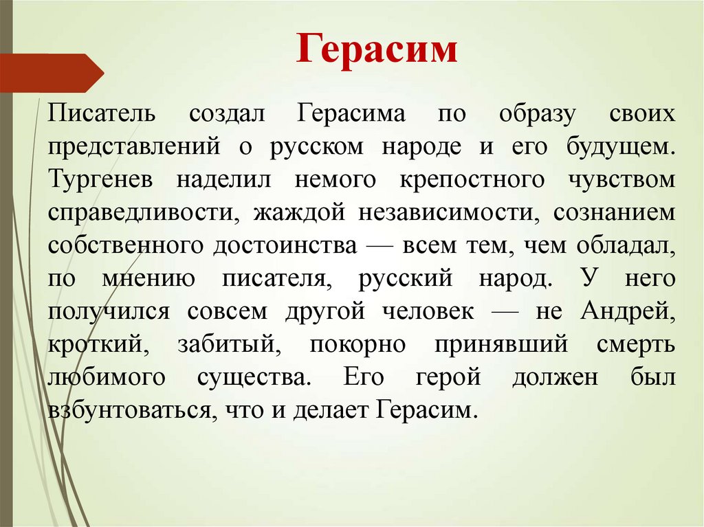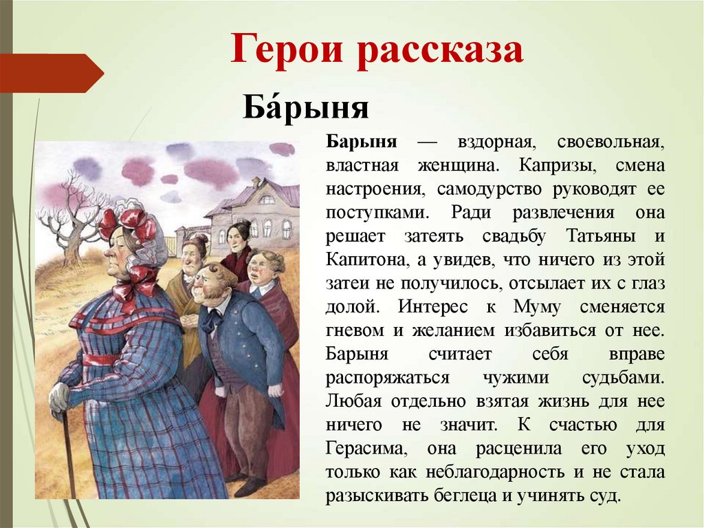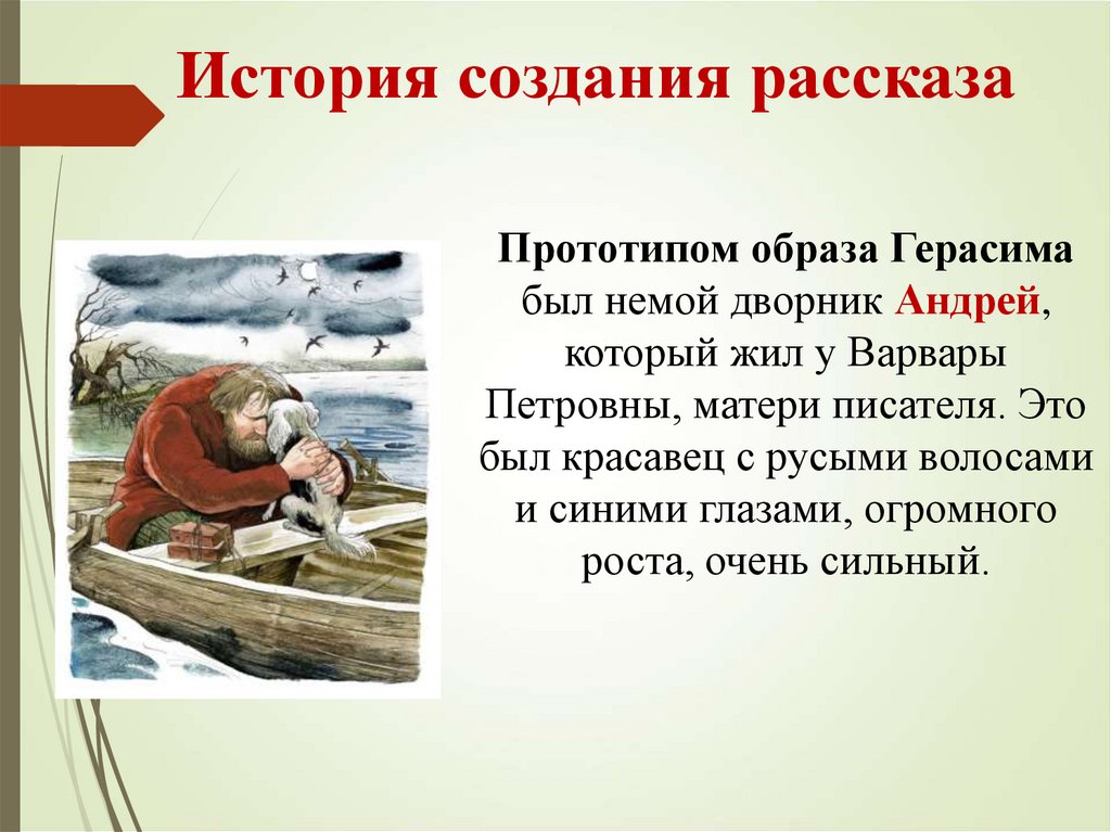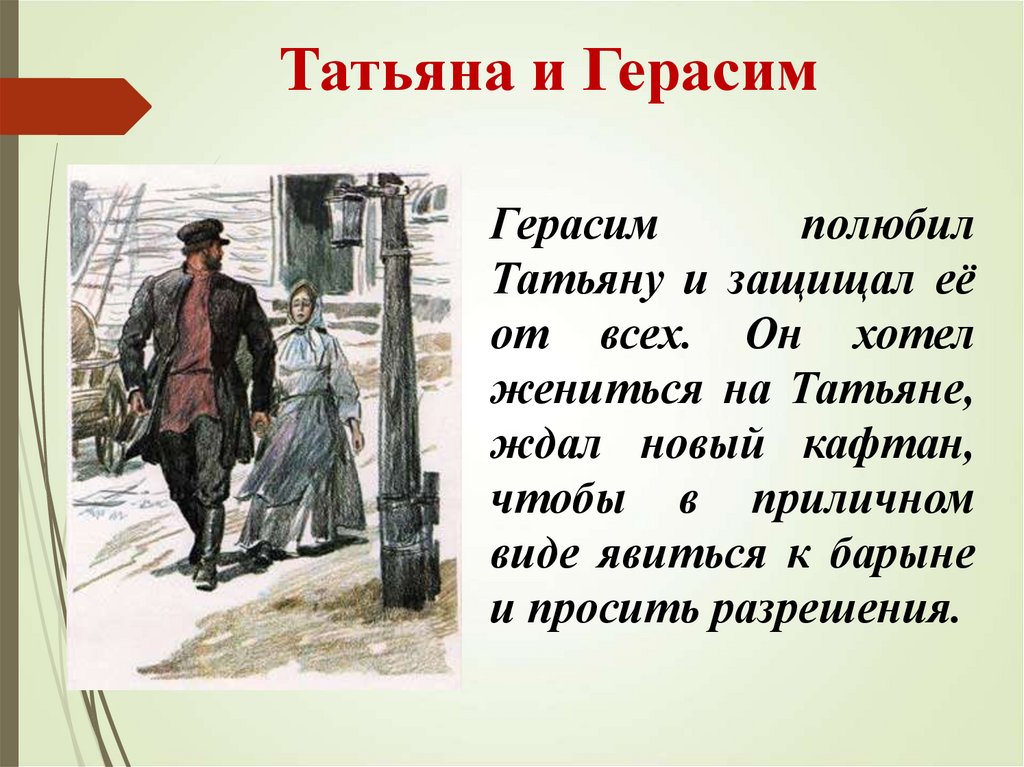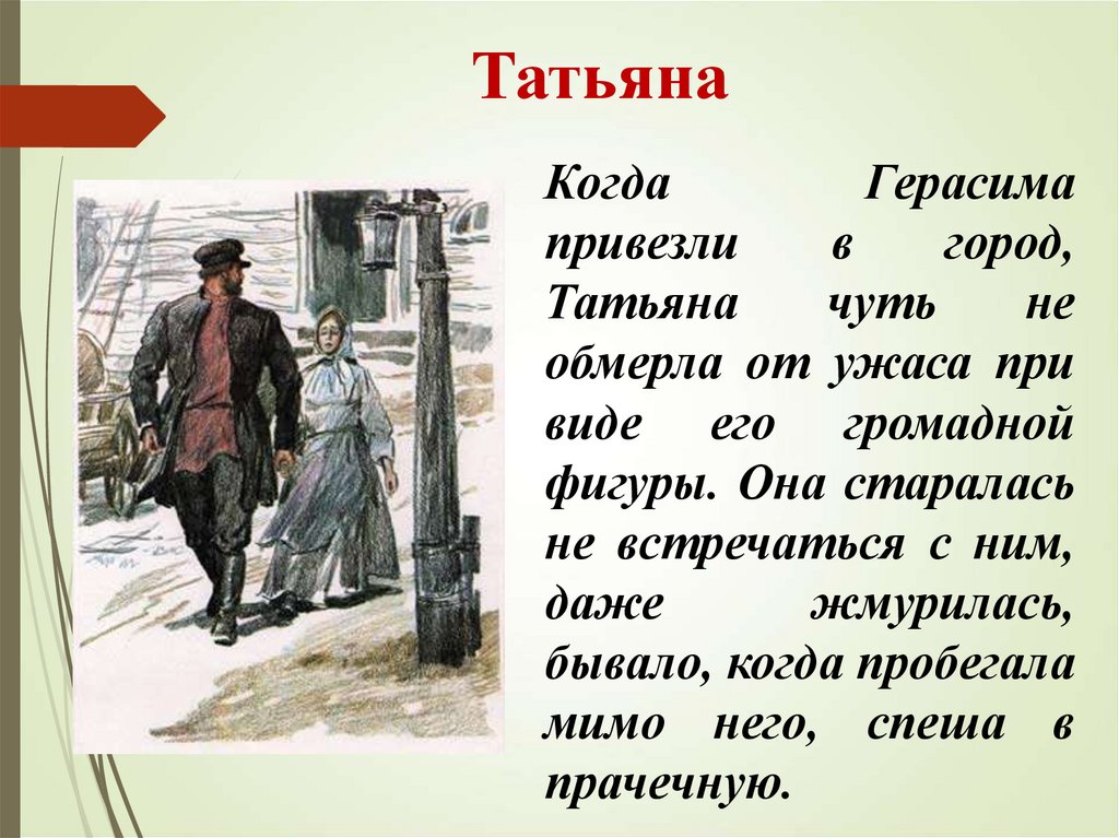 Герои рассказаГера́сим – дво́рник (работник, поддерживающий чистоту и