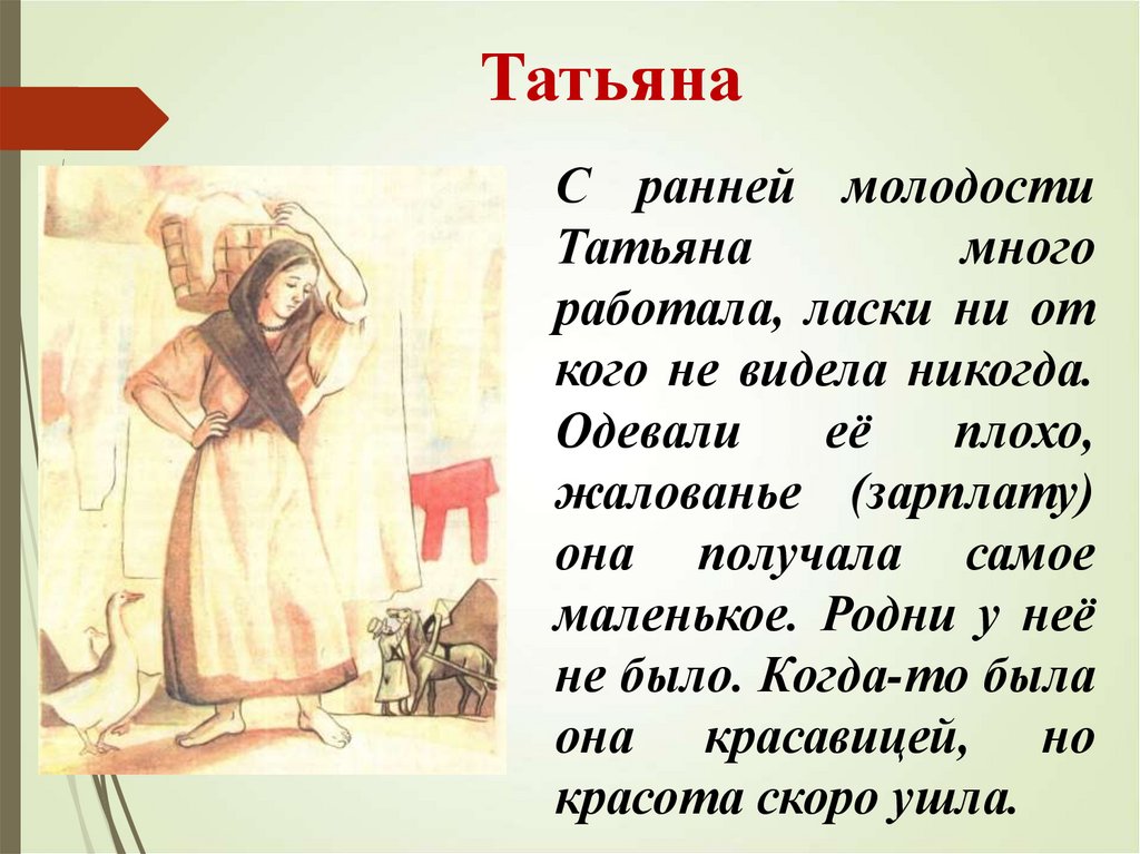 Татьяна – прачка (работница, занимающаяся стиркой белья)
