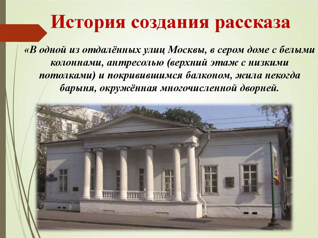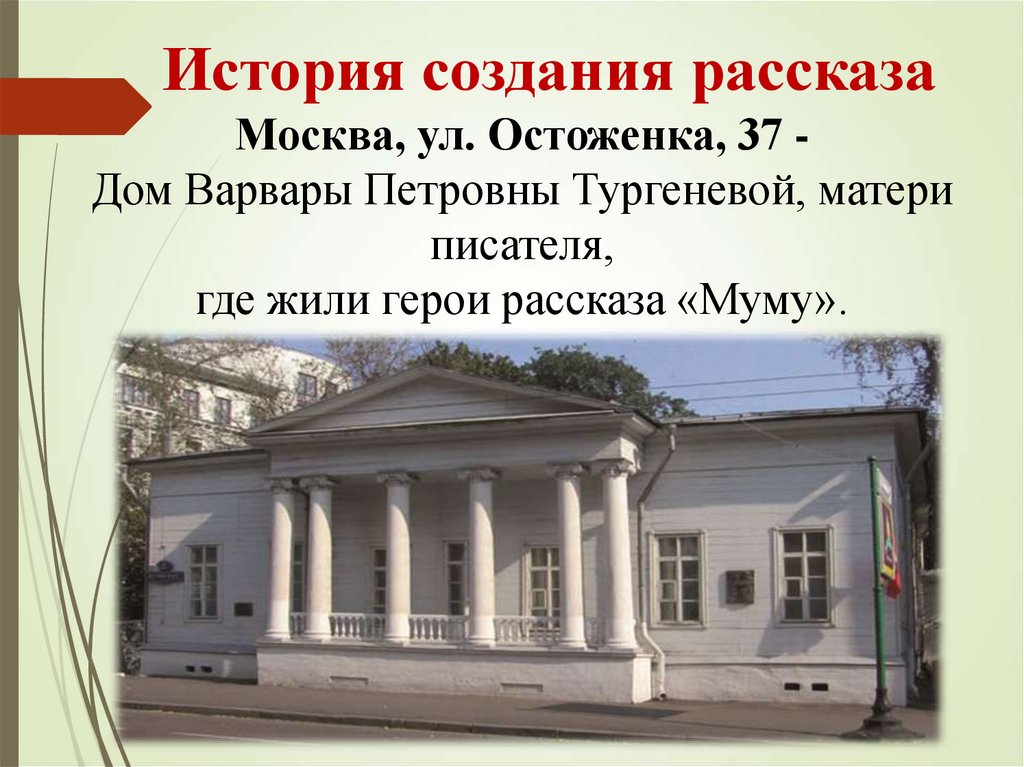 История создания рассказаМосква, ул. Остоженка, 37 Дом Варвары Петровны Тургеневой, матери