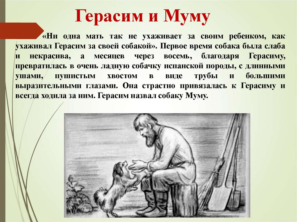 Герасим и Муму«Ни одна мать так не ухаживает за своим ребенком, как