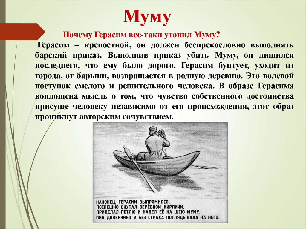 барский приказ. Выполнив приказ убить Муму, он лишился