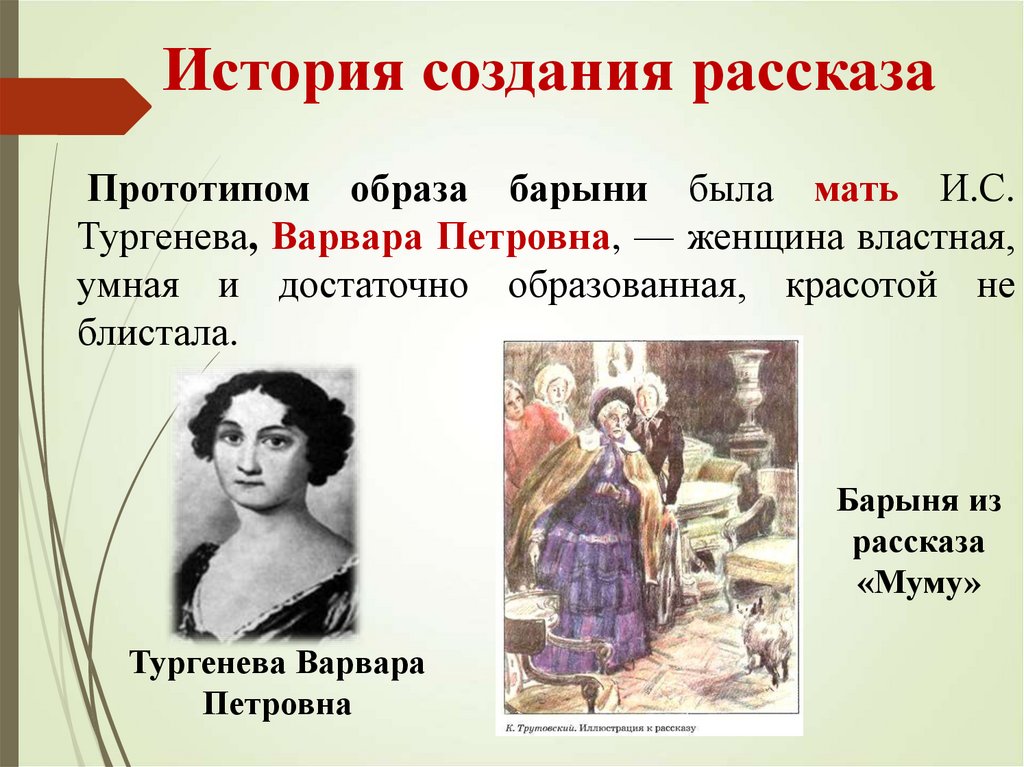 История создания рассказаПрототипом образа барыни была мать И.С.