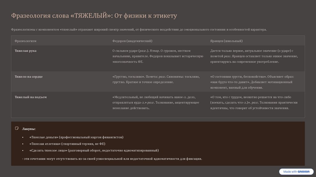 Фразеология слова «ТЯЖЕЛЫЙ»: От физики к этикетуФразеологизмы с компонентом «тяжелый» отражают широкий спектр значений, от физического воздействия до эмоционального состояния и особенностей характера.