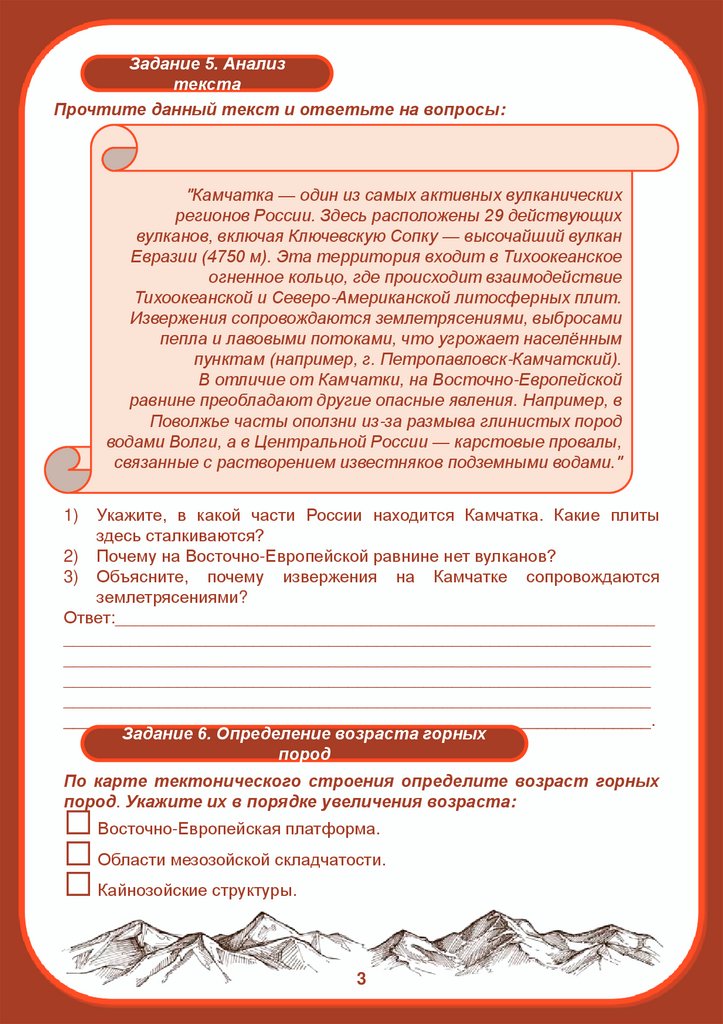 3) Объясните, почему извержения на Камчатке сопровождаются