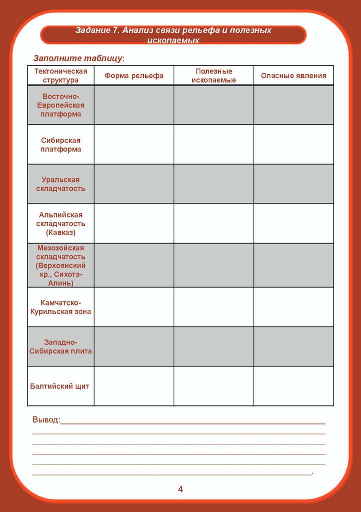 Цель работы: изучить связь тектонического строения, рельефа и полезных