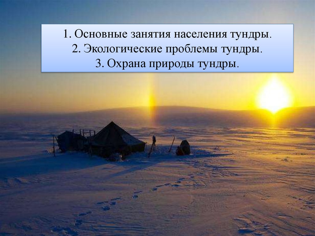 1. Основные занятия населения тундры.2. Экологические проблемы тундры.
