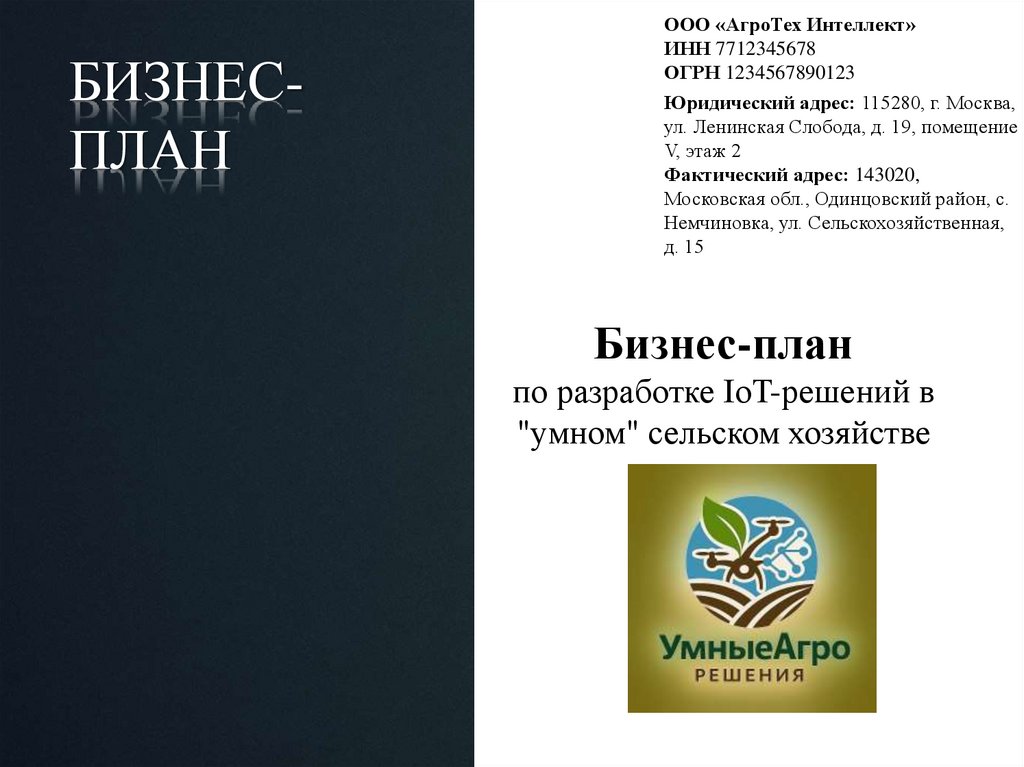 БИЗНЕСПЛАНООО «АгроТех Интеллект»