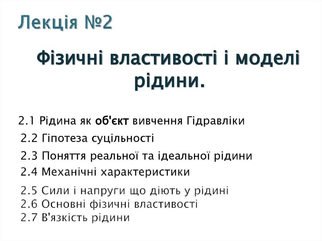 2.1 Рідина як об'єкт вивчення Гідравліки