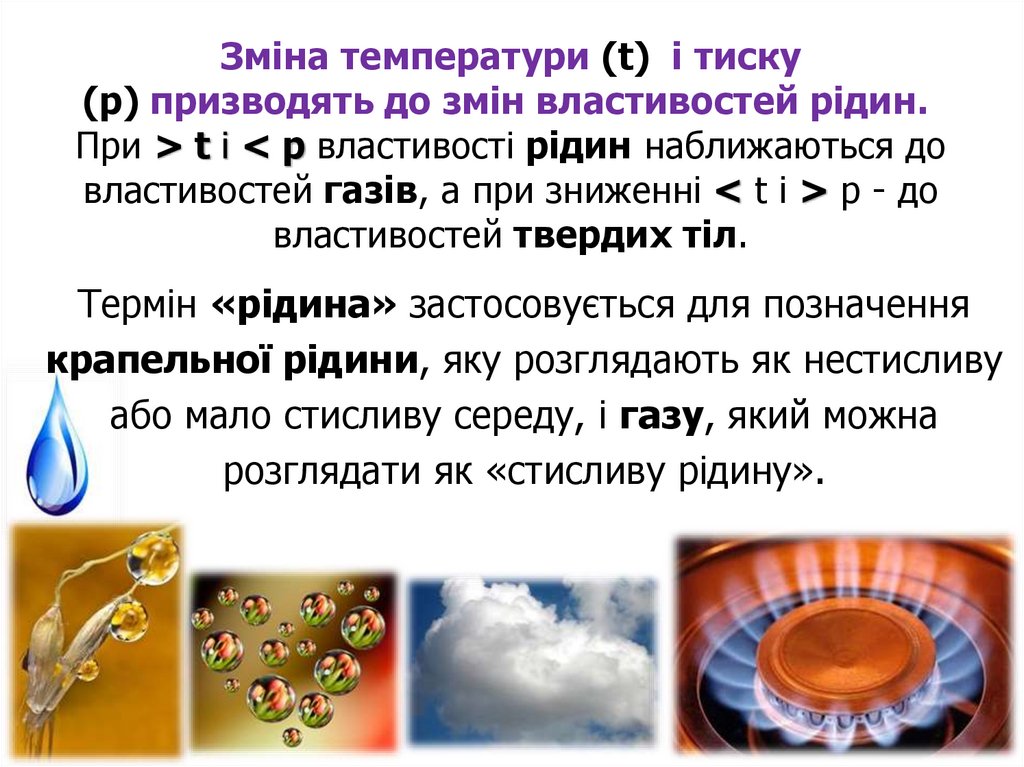 Зміна температури (t) і тиску(р) призводять до змін властивостей рідин.
