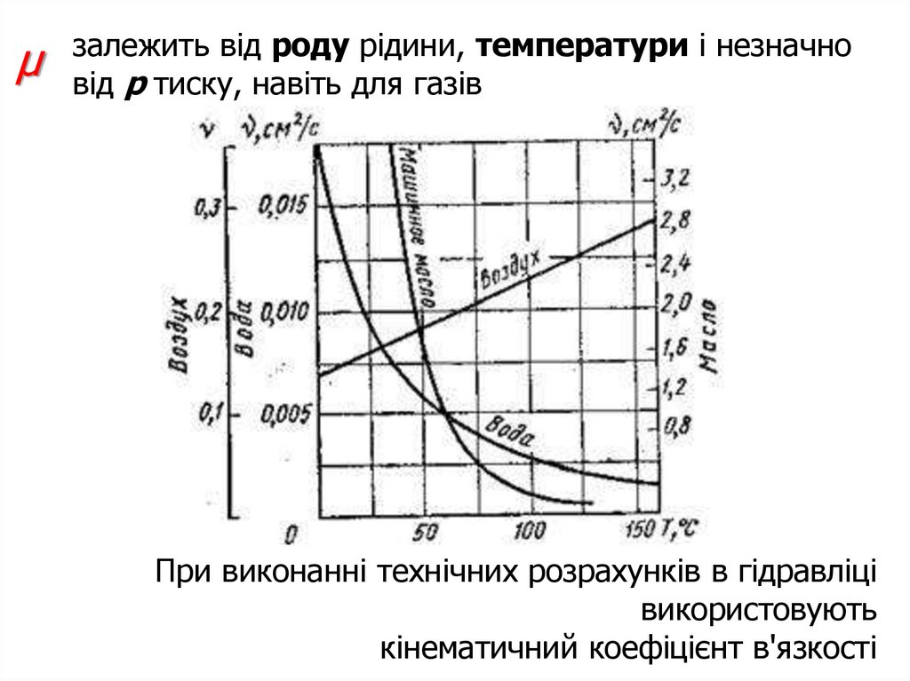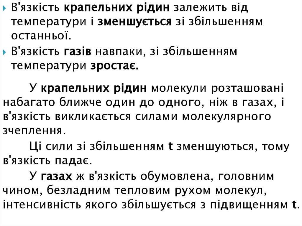 В'язкість крапельних рідин залежить відтемператури і зменшується зі збільшенням