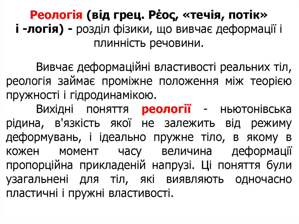 Реологія (від грец. Ρέος, «течія, потік»і -логія) - розділ фізики, що вивчає деформації і