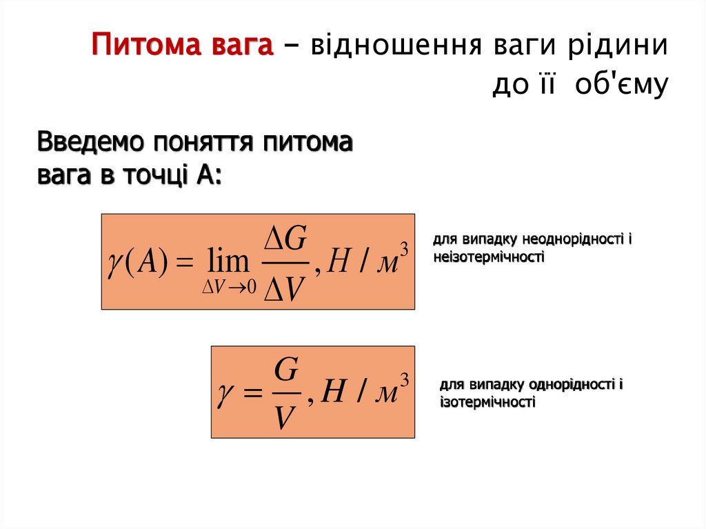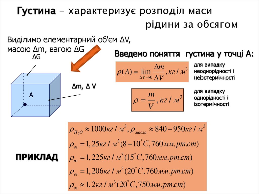 Густина - характеризує розподіл масирідини за обсягом