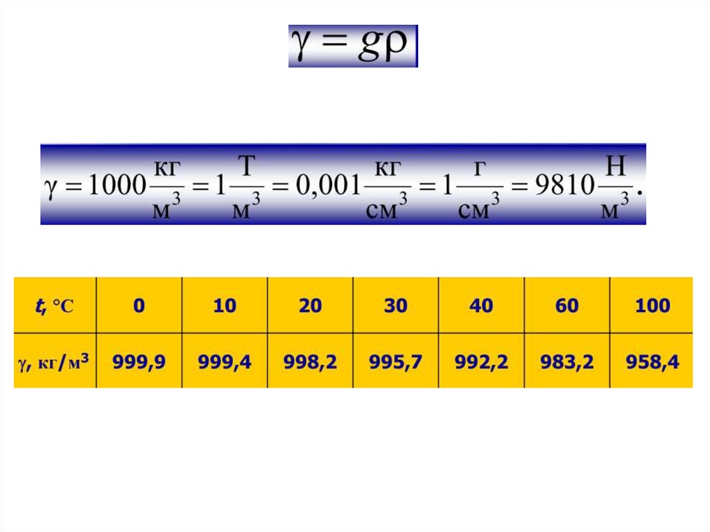 H 2O 1000кг / м3 , масла 840 950кг / м3