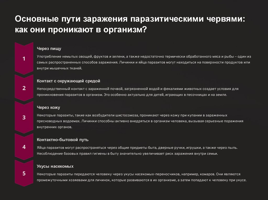 Основные пути заражения паразитическими червями:как они проникают в организм?
