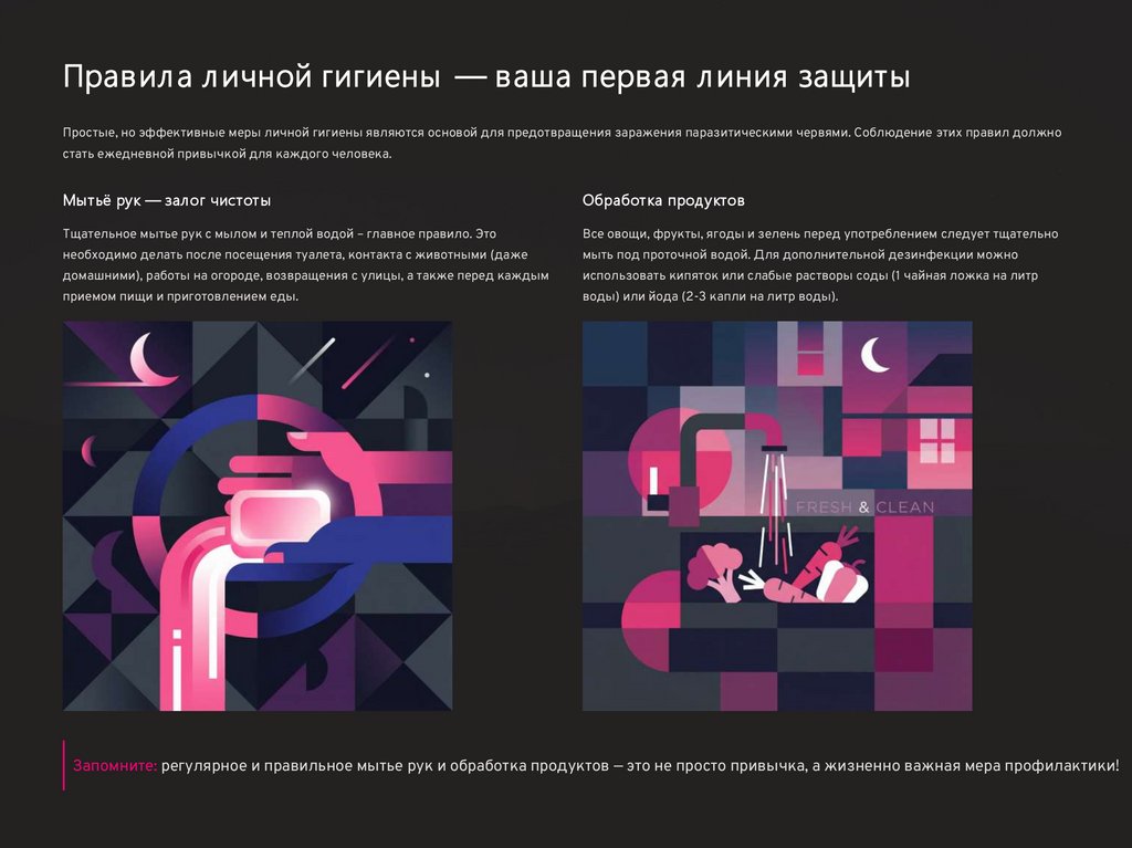 Прав ил а л ичной гигиены — ваша первая л иния защитыПростые, но эффективные меры личной гигиены являются основой для предотвращения заражения паразитическими червями. Соблюдение этих правил должно