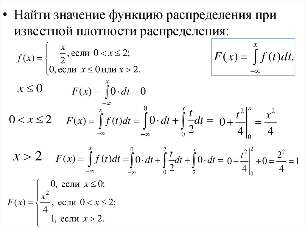 • Найти значение функцию распределения приизвестной плотности распределения: