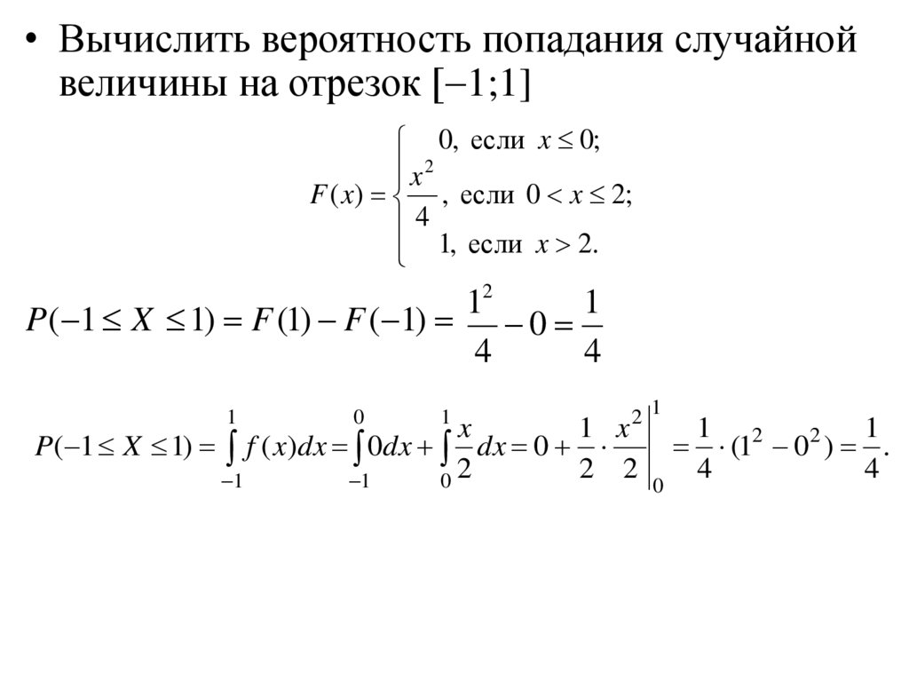 • Вычислить вероятность попадания случайнойвеличины на отрезок [ 1;1]