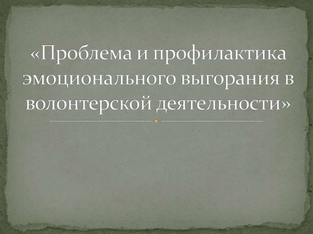1. «Проблема и профилактика эмоционального выгорания в волонтерской деятельности»