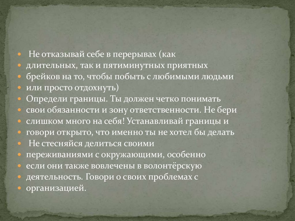 9. СОВЕТЫ ВОЛОНТЕРАМ ПО ПРОФИЛАКТИКЕ ЭМОЦИОНАЛЬНОГО ВЫГОРАНИЯ