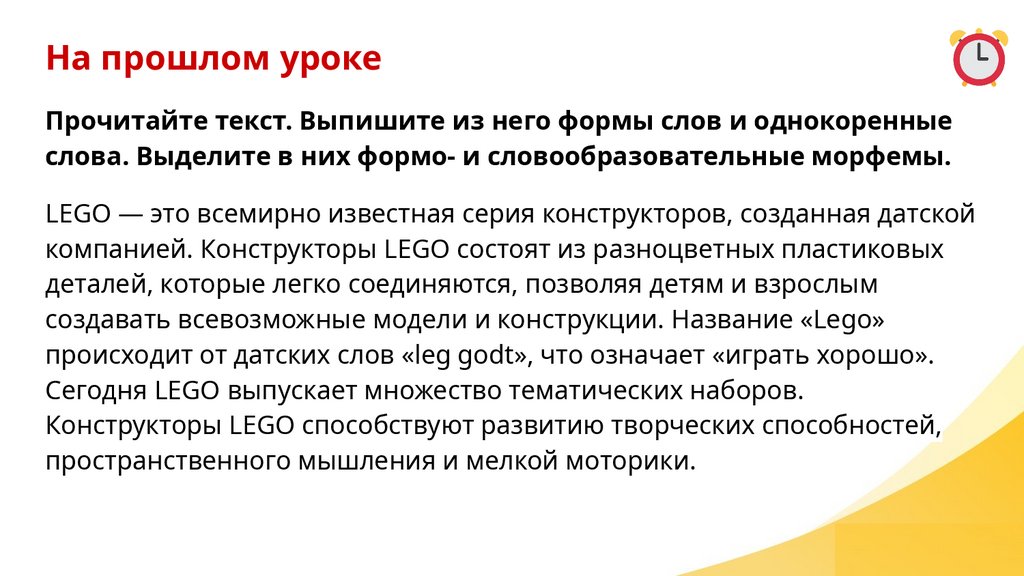 На прошлом урокеПрочитайте текст. Выпишите из него формы слов и однокоренные