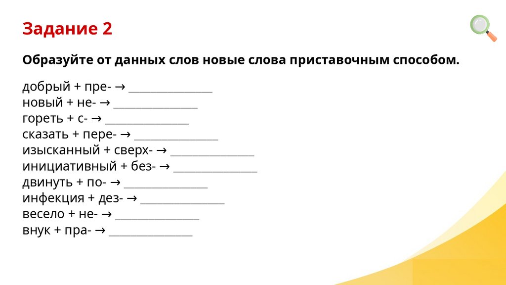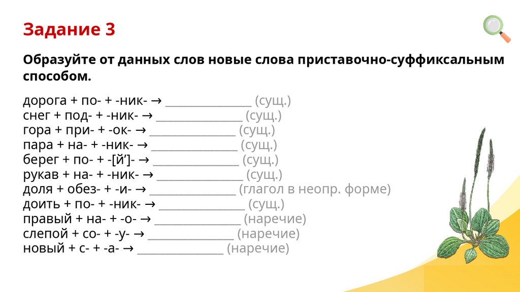 Задание 3Образуйте от данных слов новые слова приставочно-суффиксальным