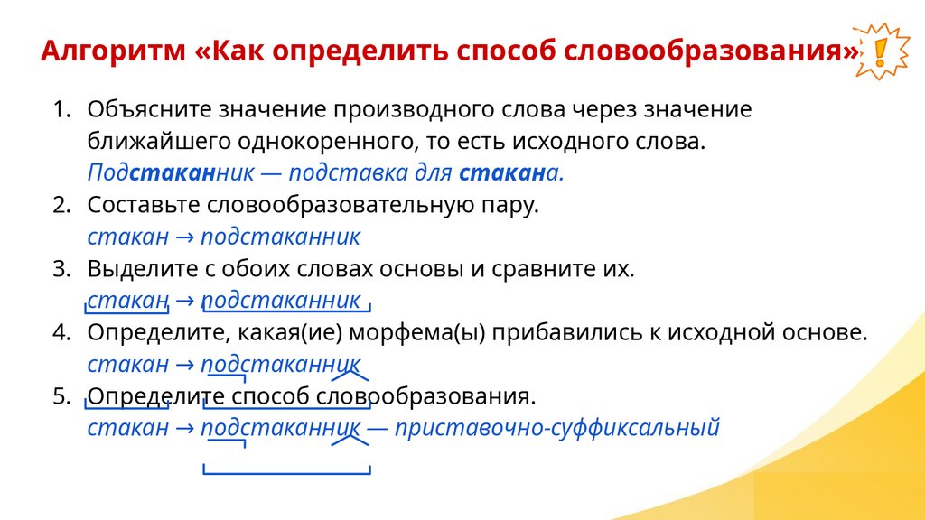 Алгоритм «Как определить способ словообразования»1. Объясните значение производного слова через значение