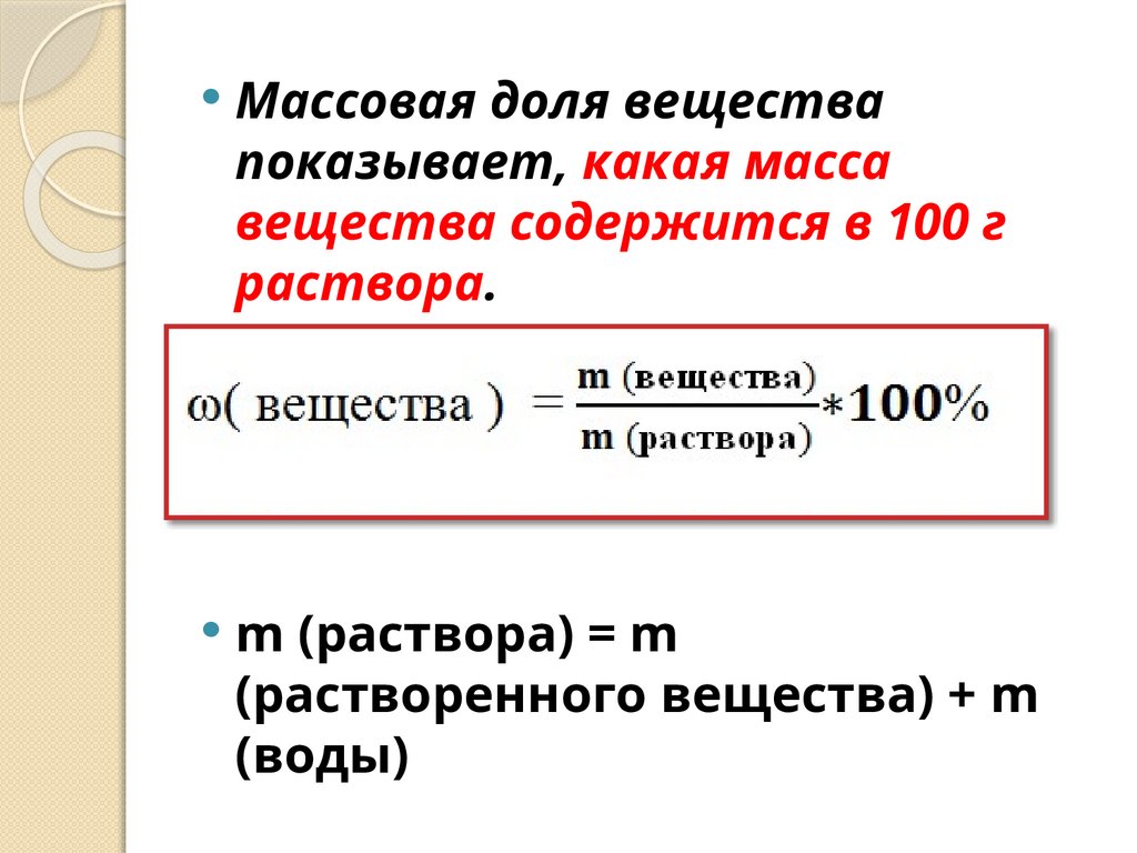 МАССОВАЯ ДОЛЯРАСТВОРЕННОГО