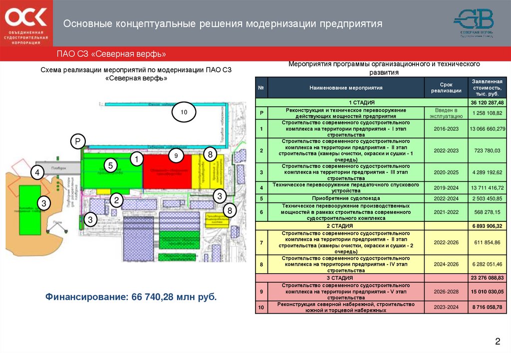 Основные концептуальные решения модернизации предприятияПАО СЗ «Северная верфь»