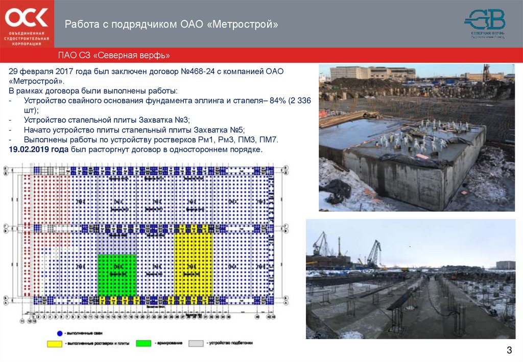 Работа с подрядчиком ОАО «Метрострой»ПАО СЗ «Северная верфь»