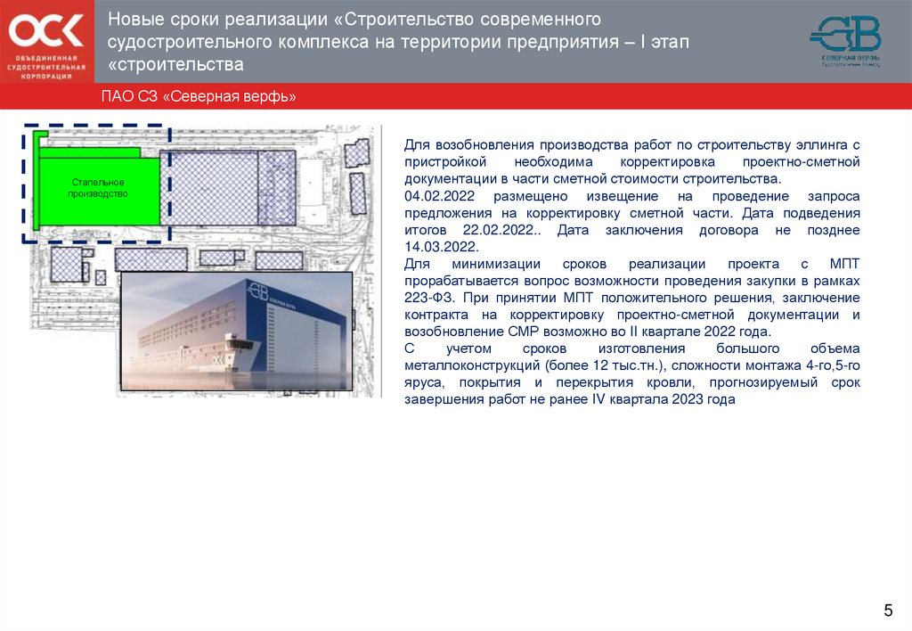Строительство современного судостроительногокомплекса на территории предприятия