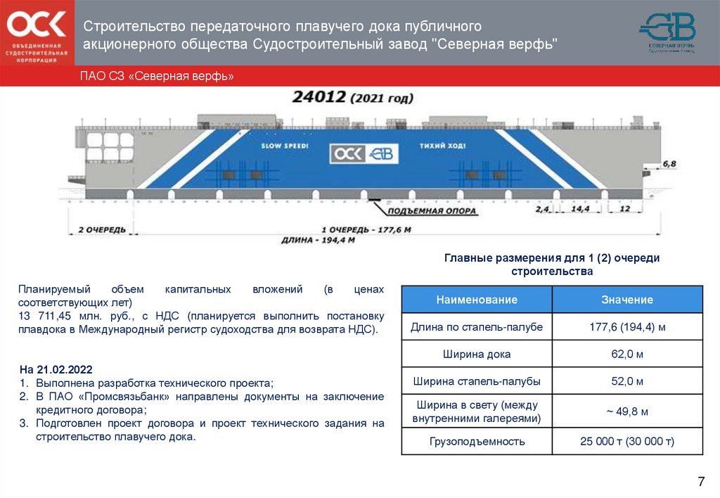 Строительство передаточного плавучего дока публичногоакционерного общества Судостроительный завод "Северная верфь"