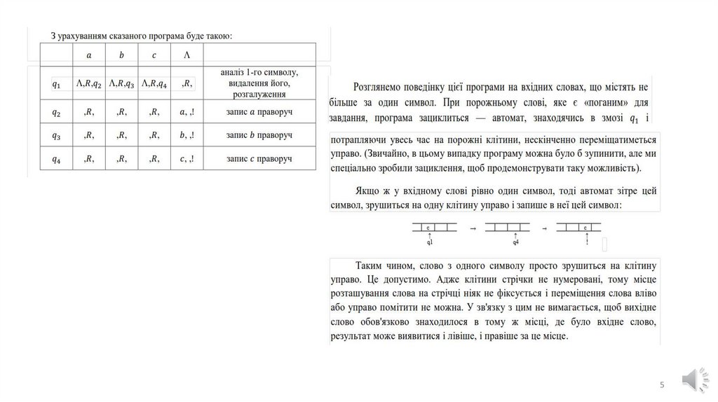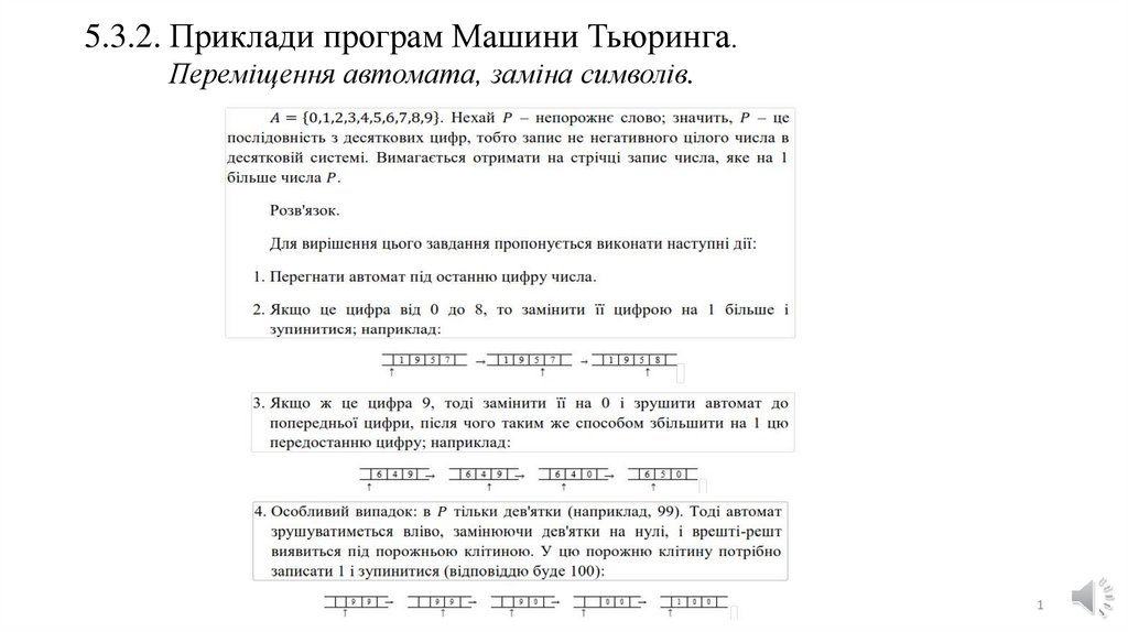 1. 5.3.2. Приклади програм Машини Тьюринга. Переміщення автомата, заміна символів.