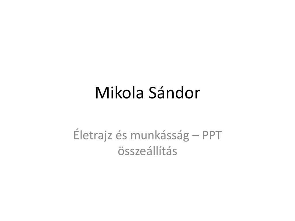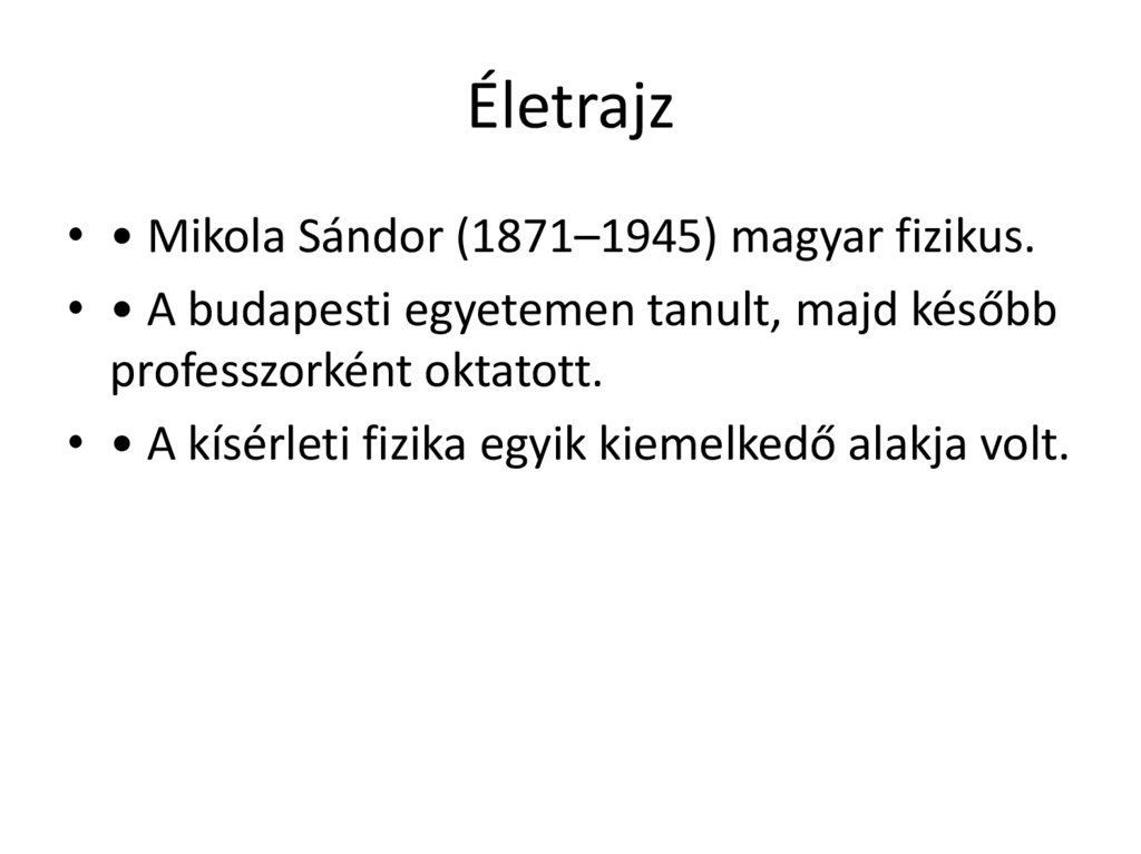 Életrajz• • Mikola Sándor (1871–1945) magyar fizikus.