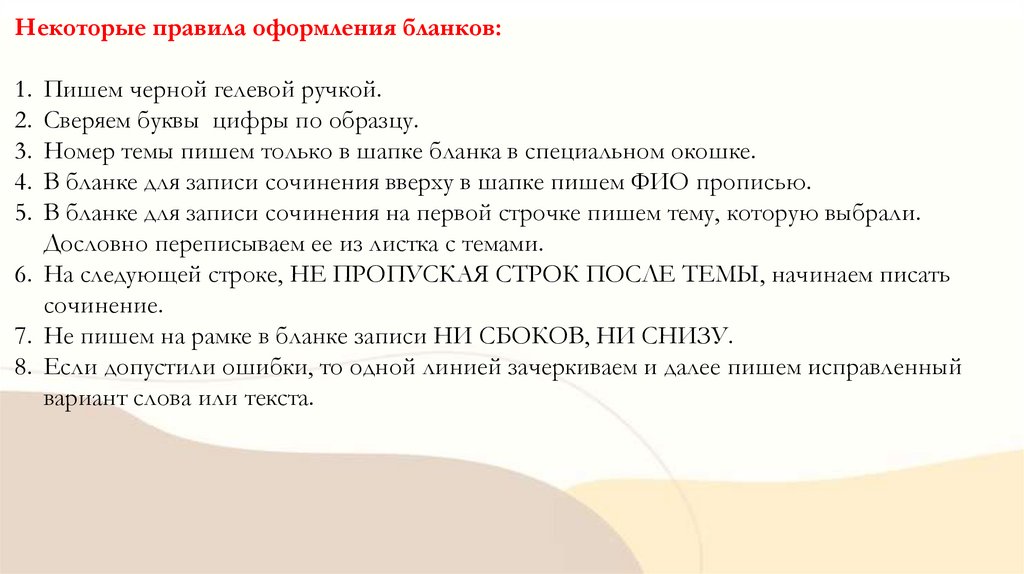 Некоторые правила оформления бланков:1. Пишем черной гелевой ручкой.