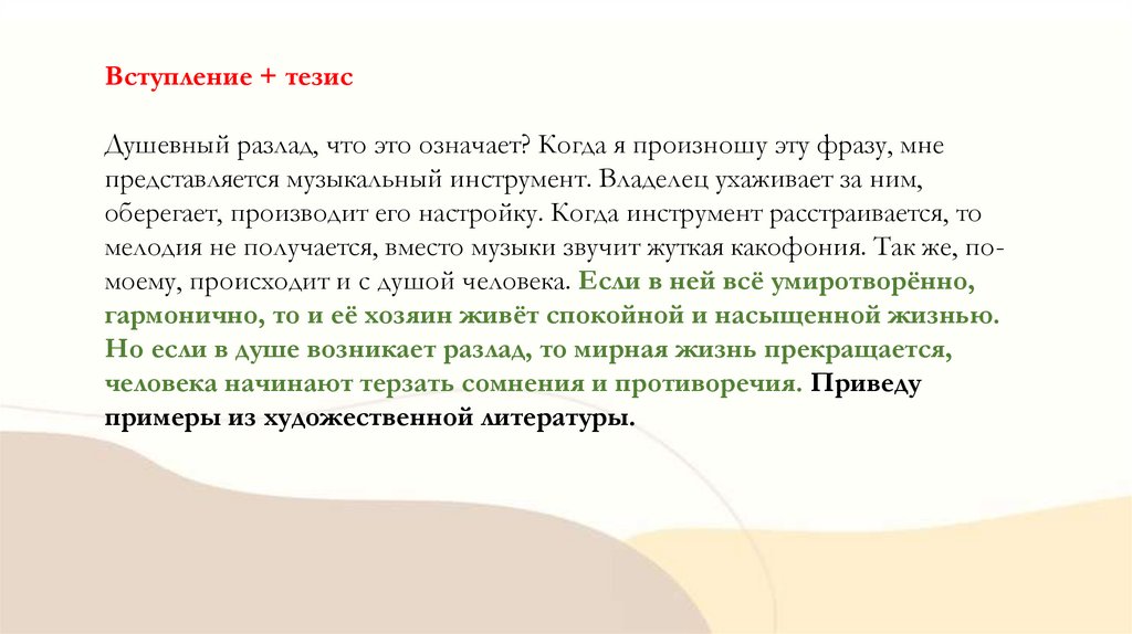 Вступление + тезисДушевный разлад, что это означает? Когда я произношу эту фразу, мне