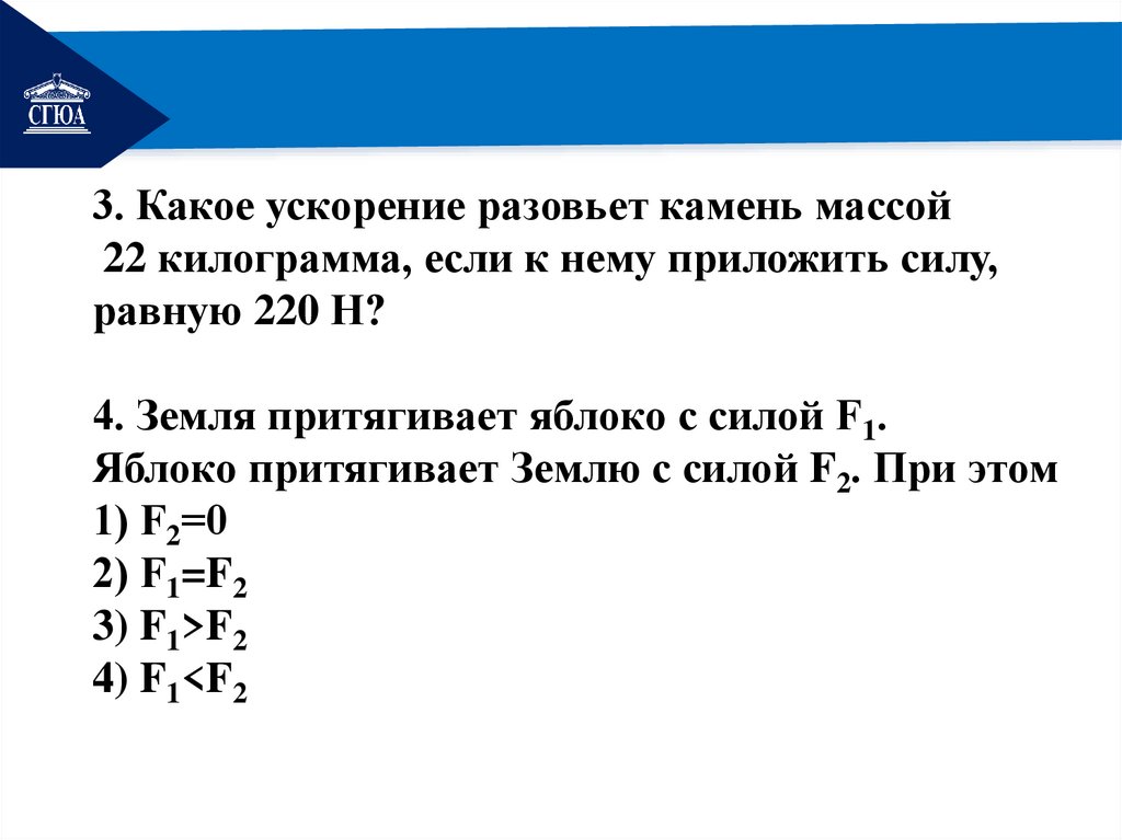 РЕМОНТ3. Какое ускорение разовьет камень массой