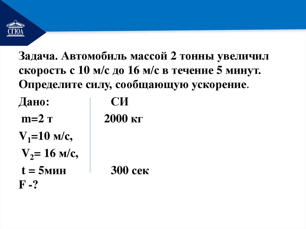 РЕМОНТЗадача. Автомобиль массой 2 тонны увеличил