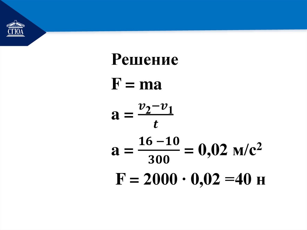 Определите силу, сообщающую ускорение.
