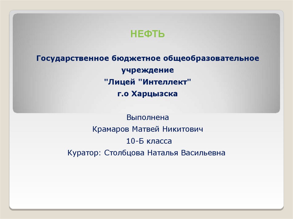 НЕФТЬГосударственное бюджетное общеобразовательное