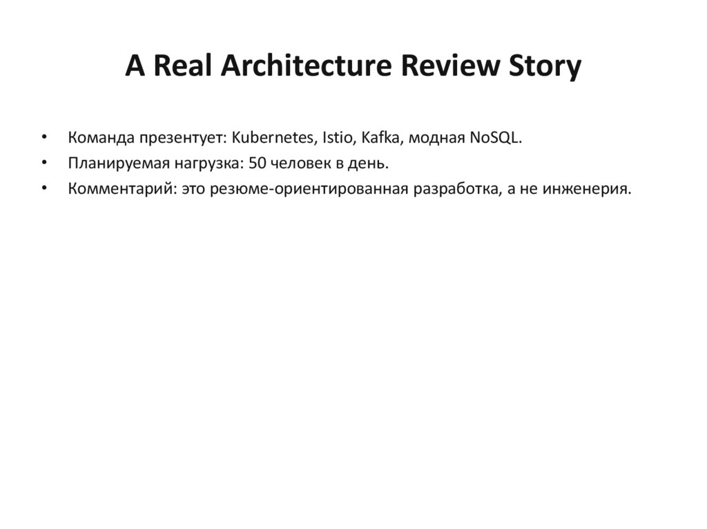 A Real Architecture Review StoryКоманда презентует: Kubernetes, Istio, Kafka, модная NoSQL.
